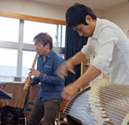 URANUS(ウラナス)というユニットの相方である中井智弥(二十五絃箏)とも同じ気持ちで学校アクティビティ事業に取り組んでおります