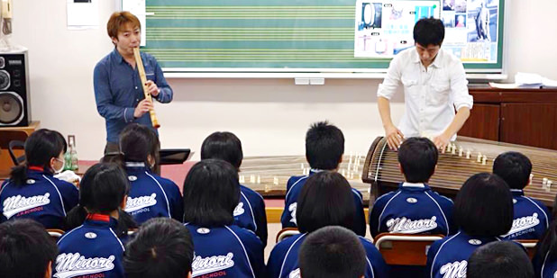学校で尺八の素晴らしさを伝えています